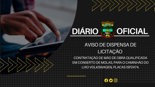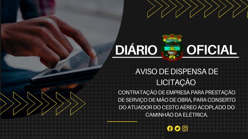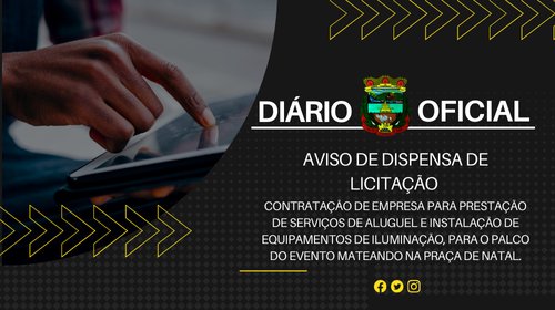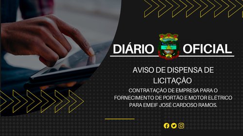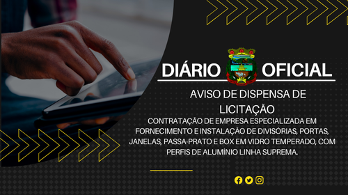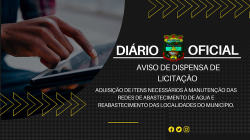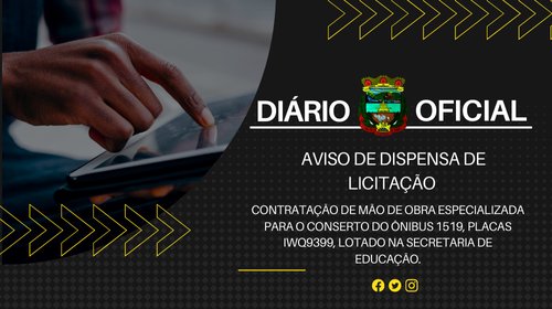 AVISO DE ABERTURA DE DISPENSA DE LICITAÇÃO O PREFEITO MUNICIPAL DE CARAÁ, no uso de suas atribuições legais, torna público para conhecimento dos interessados que realizará DISPENSA DE... Leia mais ...