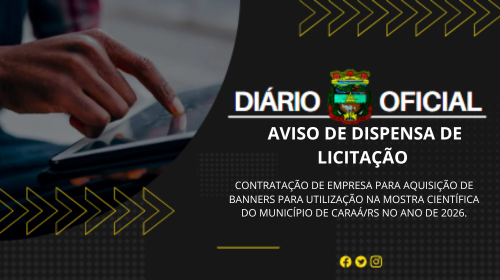 OBJETO : Contratação de empresa para aquisição de banners para utilização na Mostra Científica do Município de Caraá/RS no ano de 2026.