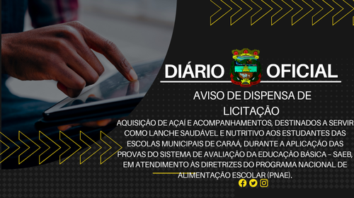 O PREFEITO MUNICIPAL DE CARAÁ, no uso de suas atribuições, torna público, para conhecimento dos interessados, que estará realizando a DISPENSA DE LICITAÇÃO com base no Art. 75, inciso II, § 3º, da Lei Federal nº 14.133/2021 e Decreto Municipal nº 1.872/2024, comunica a quem possa interessar que está recebendo propostas no período de 14 a 16 de outubro de 2025, por meio do email: licitacoes@caraa.rs.gov.br, poderão apresentar propostas pessoas jurídicas que se enquadrem nas especificações dos seguintes objetos: