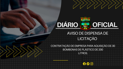 AVISO DE DISPENSA DE LICITAÇÃO - AQUISIÇÃO DE BOMBONAS DE PLÁSTICO DE 200 LITROS