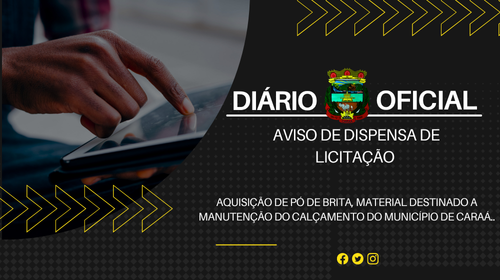 AVISO DE DISPENSA DE LICITAÇÃO - AQUISIÇÃO DE PÓ DE BRITA, MATERIAL DESTINADO A MANUTENÇÃO DO CALÇAMENTO DO MUNICÍPIO DE CARAÁ.