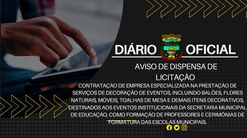 AVISO DE DISPENSA DE LICITAÇÃO - CONTRATAÇÃO DE EMPRESA PARA SERVIÇOS DE DECORAÇÃO