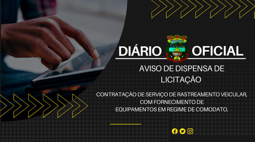 AVISO DE DISPENSA DE LICITAÇÃO - Contratação de serviço de rastreamento veicular, com fornecimento de equipamentos em regime de comodato.