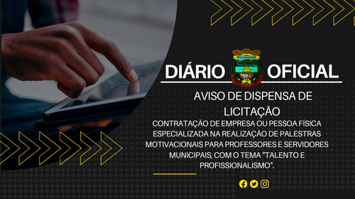 AVISO DE DISPENSA DE LICITAÇÃO - PALESTRAS MOTIVACIONAIS PARA PROFESSORES E SERVIDORES MUNICIPAIS, COM O TEMA "TALENTO E PROFISSIONALISMO".