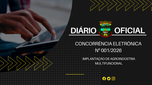 O Município de Caraá torna público que no dia 06 de maio de 2026, às 15h01 min, no site www.portaldecompraspublicas.com.br serão recebidos os lances referente à Concorrência Eletrônico nº 01/2026, para Construção de Agroindústria, conforme edital, em conformidade com a Lei Federal nº 14.133/2021. Os interessados deverão cadastrar-se e enviar suas propostas, até o dia 06 de maio de 2026, às 15 horas, no site. Maiores informações serão prestadas aos interessados no horário das 8h às 12h, e das 13h30min às 17h, na Prefeitura Municipal de Caraá, pelo fone: (51) 99992-4567 ou no site: www.caraa.rs.gov.br e www.portaldecompraspublicas.com.br.